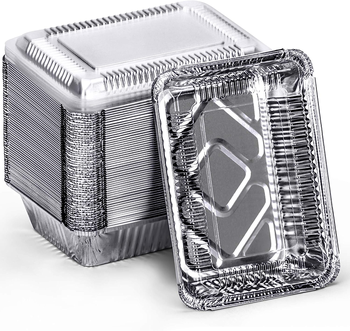 Paquet de 30 casseroles rectangulaires jetables demi-taille en aluminium personnalisées avec couvercles en aluminium Récipients en papier aluminium PE