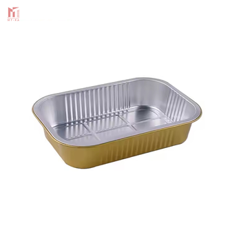 1000 मिलीलीटर गोल्डन ओब्लांग गोल्ड बेकिंग कंटेनर गर्मी सीलिंग ढक्कन पैटर्न के साथ लेपित एल्यूमीनियम पन्नी भोजन ट्रे सील प्रकार