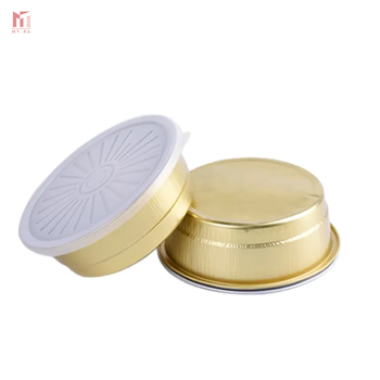 सोने के गोल डिस्पोजेबल भोजन का उपयोग एल्यूमीनियम पन्नी कंटेनर एल्यूमीनियम पन्नी कंटेनर दीवार एल्यूमीनियम पन्नी कंटेनर